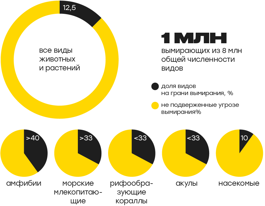 Среди наземных, пресноводных и морских позвоночных, беспозвоночных и растений, которые достаточно хорошо изучены, доля видов, находящихся на грани вымирания, — 25%. Среди амфибий — свыше 40%.
